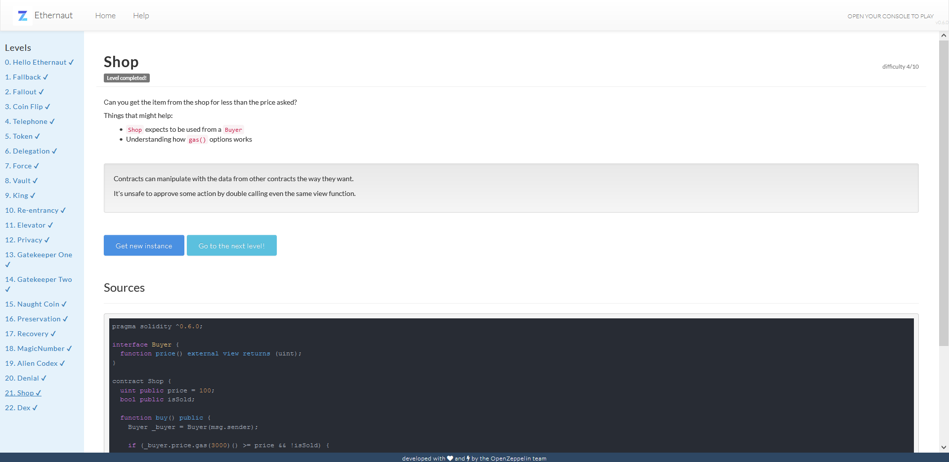 You will be successful in this level if you manage to drain all of at least 1 of the 2 tokens from the contract, and allow the contract to report a “bad” price of the assets.